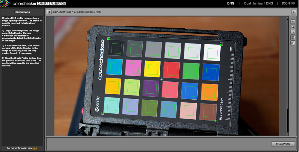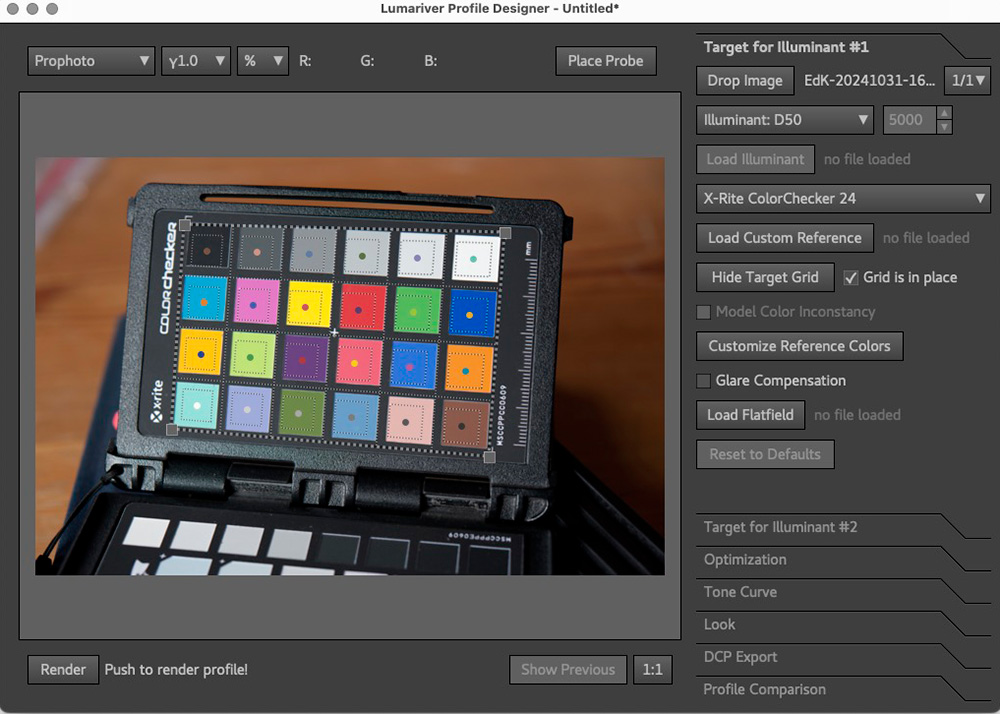 Het meest gebruikte programma om die profielen te maken is ColorChecker Camera Calibration dat met beide kaarten kan werken. Voor fotografen die veel meer opties willen is er Lumariver Profile Designer dat een aparte keuze heeft voor profielen voor het reproduceren van beeldende kunst maar waarmee je de profielen ook nog verder naar je hand kunt zetten. Het vraagt wel de nodige studie als je er serieus mee aan de slag wilt.