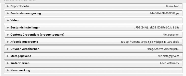 Bij die export kun je alle instellingen kiezen die van belang zijn.