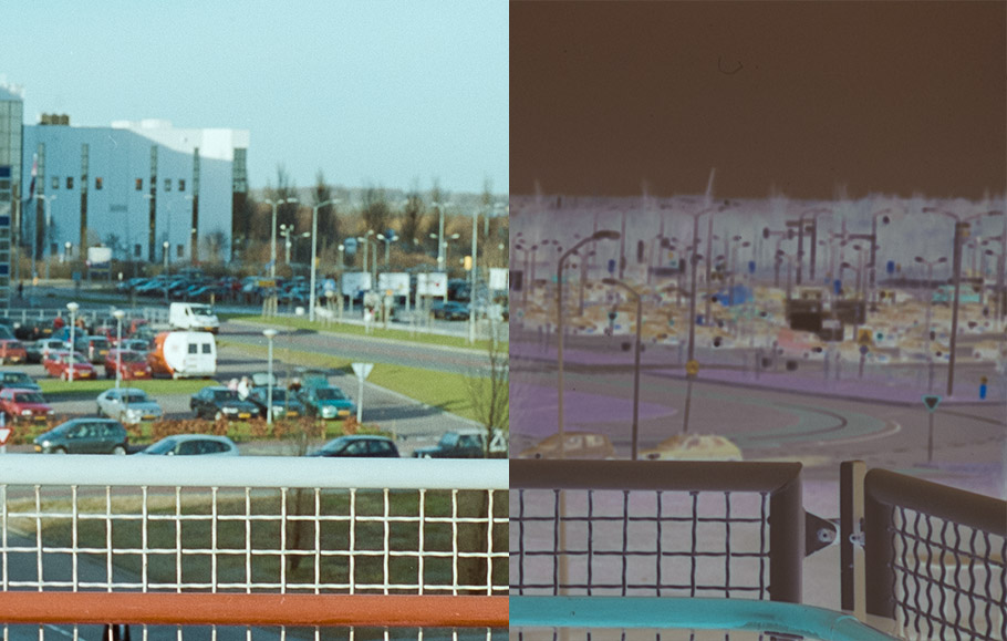 Kleurnegatief materiaal kan gereproduceerd worden, maar het verwerken ervan tot mooie kleurenfoto's is wat lastiger, hoewel zeker niet onmogelijk. Naast de kleurcorrecties op het RAW-bestand is het vaak handig om de mogelijkheden van de auto-color correctie in Photoshop goed te leren gebruiken. Hierboven rechts het negatief, links de kleuren van de positief gemaakte reproductie.